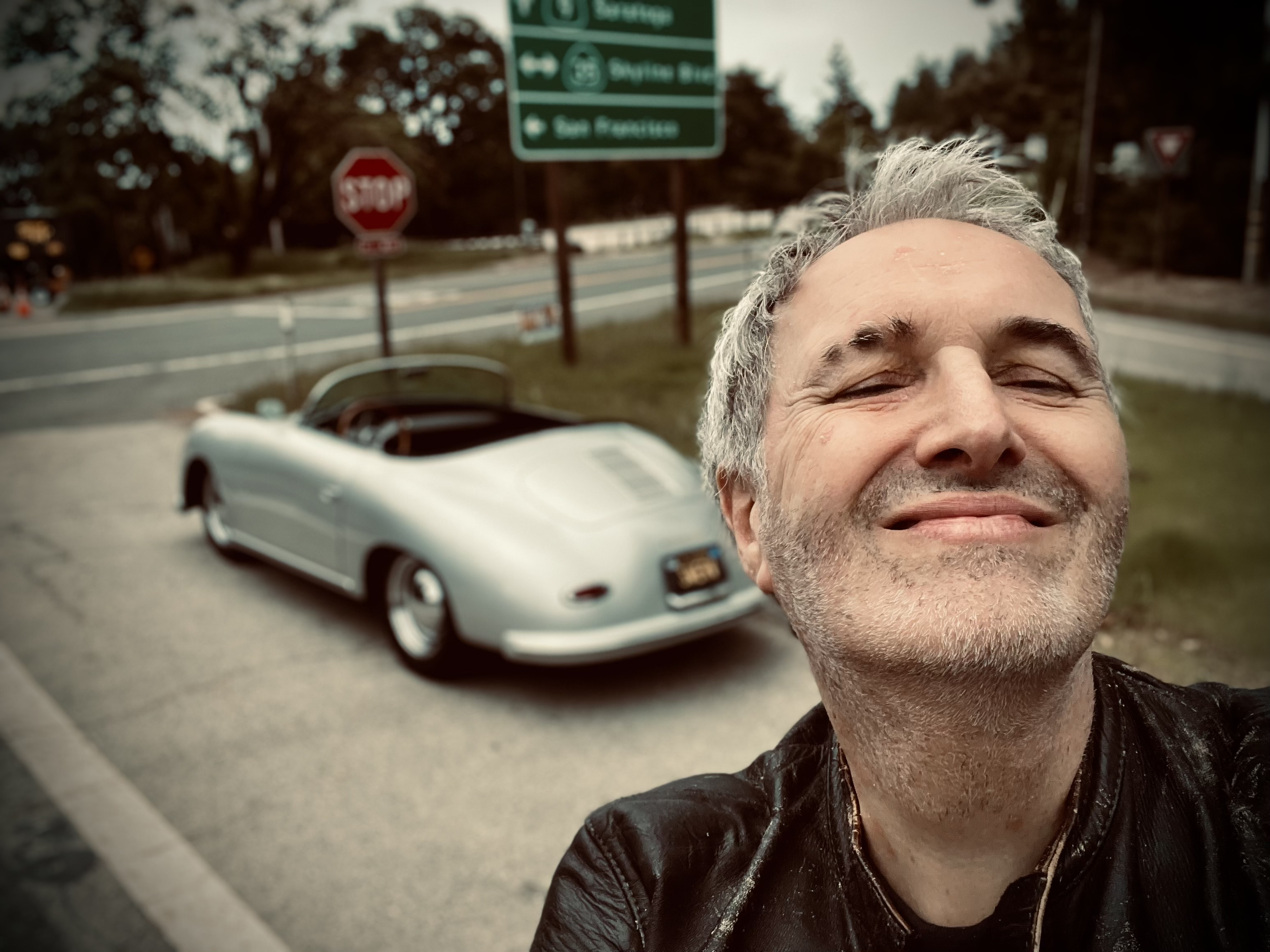 -------- Original message --------From: Peer Landa peer@ccrma.stanford.edu Date: 4/26/24 6:41 AM (GMT-05:00) To: ducati@list.ducati.net Subject: [Ducati] P-car squirt... (NDC) Yesterday I helped a friend transport his old Speedster from Monterey to Menlo Park (about 100 miles). When realizing his plan was to flatbed it up, I meekly asked if I could maybe-perhaps-possibly drive it instead... no? And sure enough, this super laid-back Bay Area native let me have at it. So yea, his precious little classic P-car (or nazi go-kart as my dad used to call them) is truly an orgasm to drive ... but also quite daunting when going fast on the HWY-9 canyon road up from Boulder Creek (which is among the best & most challenging moto roads in the world) -- luckily there were no traffic at all.Yep, sometimes life is good ... really good. Here's a quick selfie I shot while waiting for the owner to catch up -- twilight at the top of HWY-9/Skyline, the 4-corner intersection: